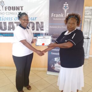 Through collaboration with other dispute resolution expert I am the lead trainer at FRANK FOUNT MEDIATION AND CONSULTANCIES where mentorship is addressed at both individual and group levels as need be .