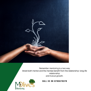Remember mentoring is a two way Street-both mentor and the mentee benefit from the relationship- long life relationship and mutual growth.